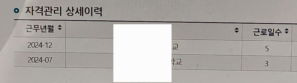그리고 7월과 12월에 일용직으로 3일, 5일 근무했습니다.