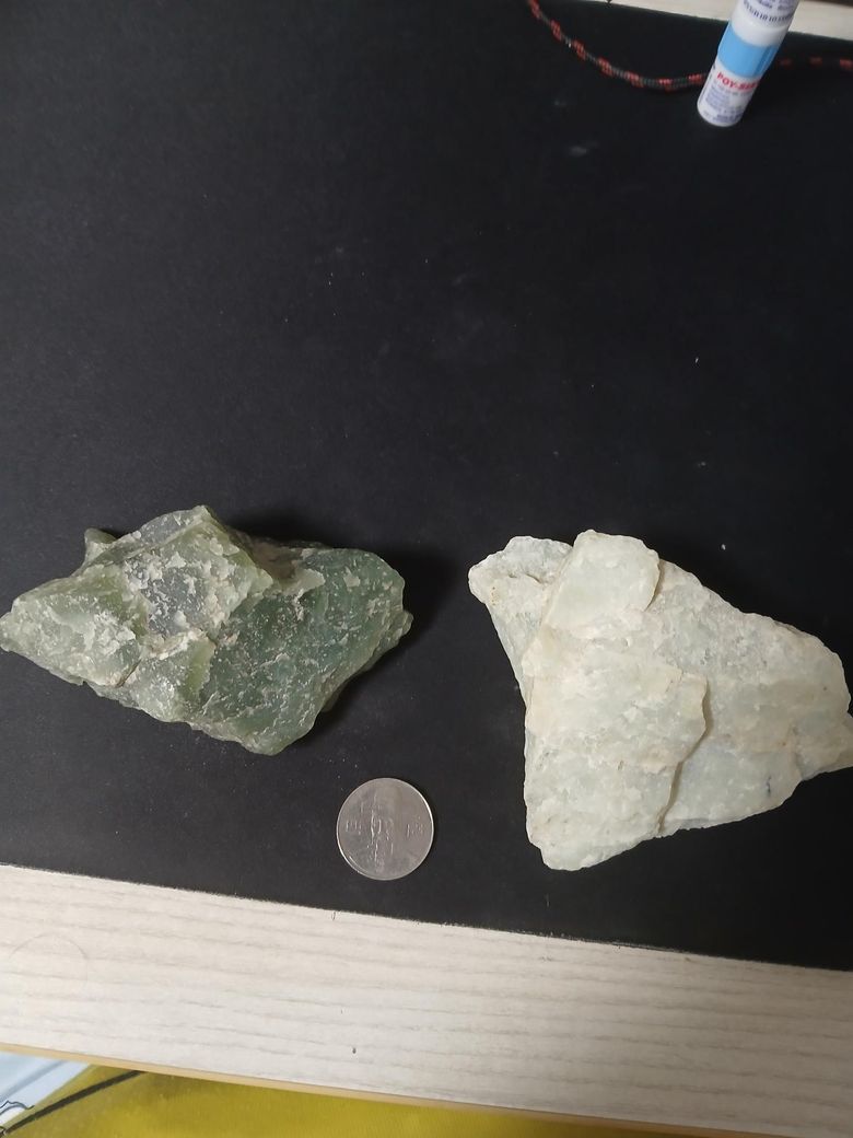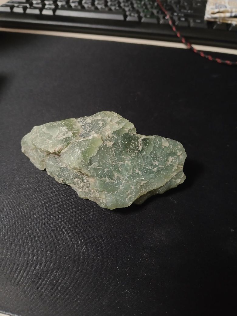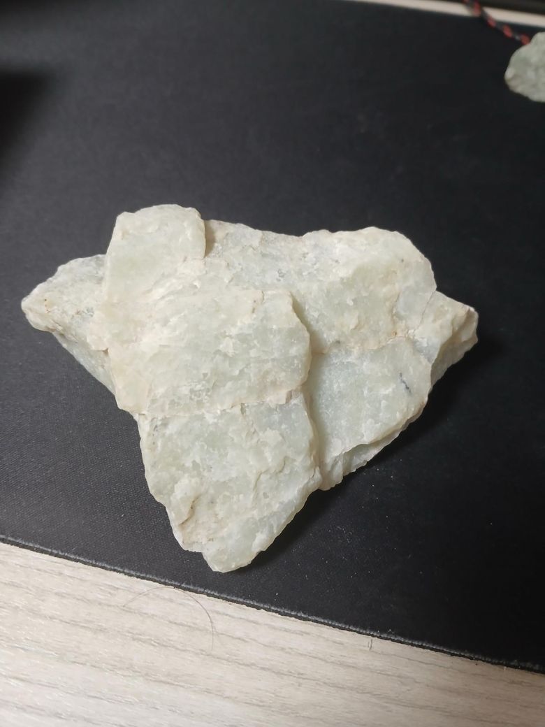 가장 유력한 건 형석, 반투명한 연녹색이고 표면이 약간 유리처럼 보이면서 깨진 면이 평평하고 덩어리 형태로 깨진 느낌