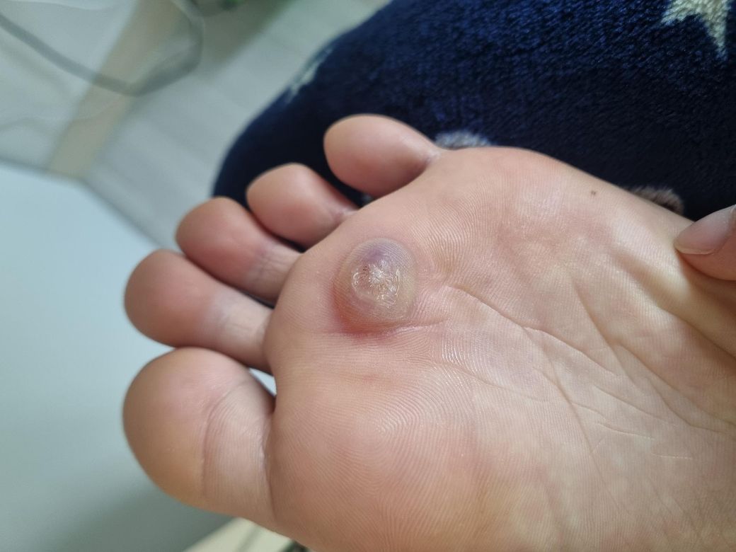 사진과 경과를 보면 냉동치료 후 생긴 물집으로 보입니다. 사마귀 냉동치료 후 1–3일 사이에 물집이 크게 부풀고 통증이 심해지는 경우는 드물지 않지만, 가만히 있어도 극심한 통증이 지속되는 수준이라면 정상 반응의 범위를 넘어섰을 가능성도 있습니다.