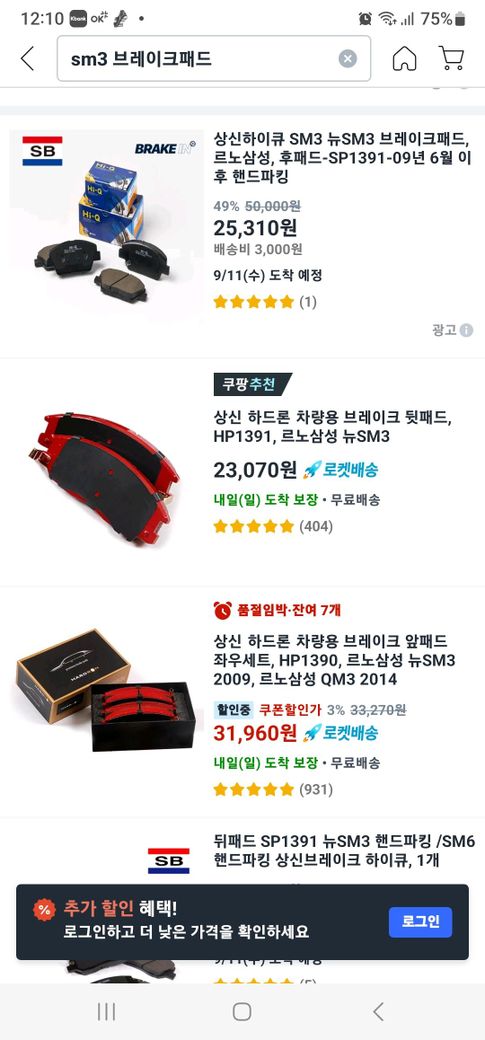 sm3 2014년식 뒷바퀴 브레이크 패드 교체 권유 잗았는데요. 공임나라에서 사오세요라고 해서 검색했는데요.
