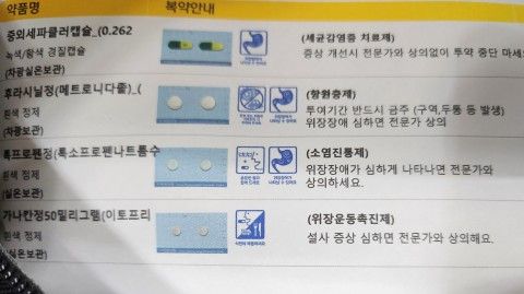 현재 처방받은 약들의 경우 균을 치료하는 항생제와 항원충제 및 소염진통제 성분이 함유되어 있어 균으로 인해 붉고 따가운 증상 및 염증을 개선할 수 있는 약들이기에 처방받은 약을 의사의 지시에 따라 끝까지 다 복용하길 권장드립니다.