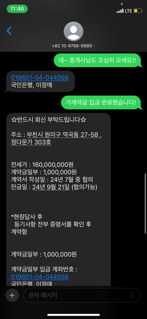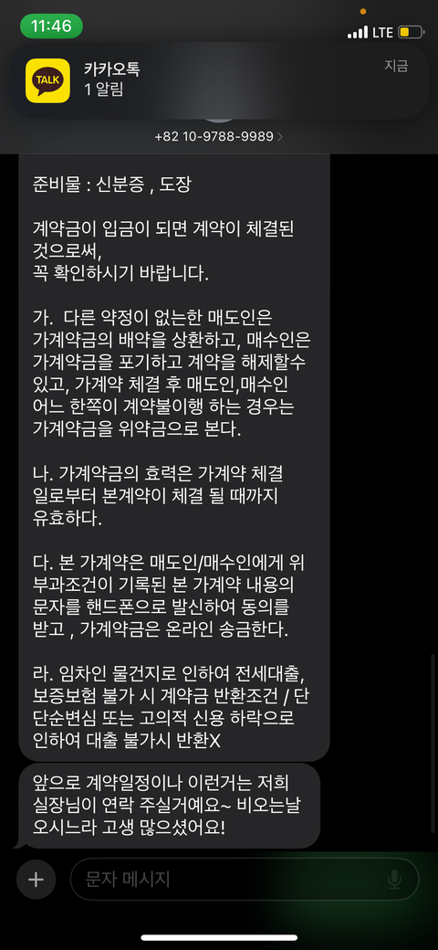 가계약시 문자로 특약을 부동산에 보내줬는데
