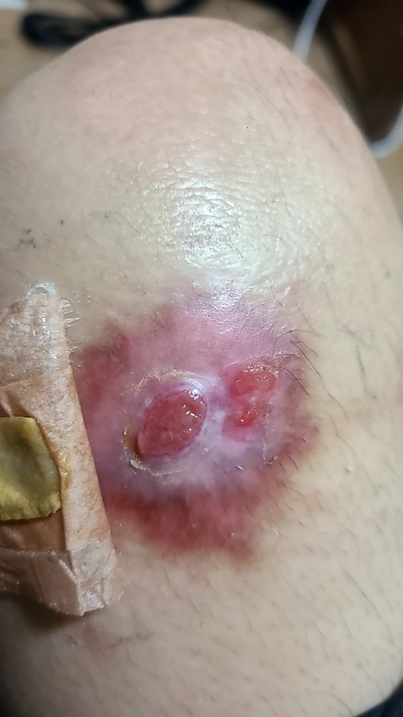 다행히 급성기 상처가 많이 호전되어 보입니다. 다만 비후성 흉터가 남아 있어 이를 보다 개선 하기 위해서 흉터재생연고나 피부과에서 흉터치료프로그램을 받는 것이 보다 도움이 될 것으로 보입니다.