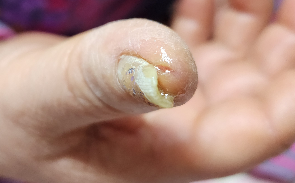 피부과 방문 손톱의 상태에 대한 평가를 받아보시는 것이 우선일 듯 합니다만.. (무좀 등)