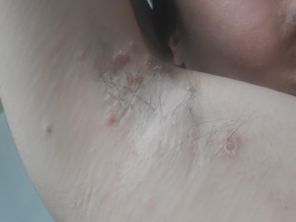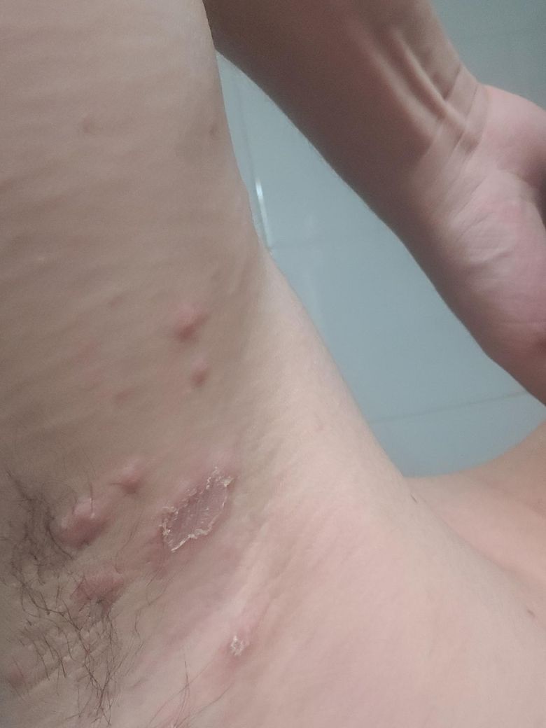이런 두드러기들이 점점 늘어나요 겨드랑이 등 옆구리 엉덩이 이런곳에 있습니다 너무 가려워요 겨드랑이나 등쪽의 큰 두드러기들은 사진처럼 튼다고 해야하나 그런 증상도 있습니다 무슨 병인가요? 어느 병원으로 가야할까요?
