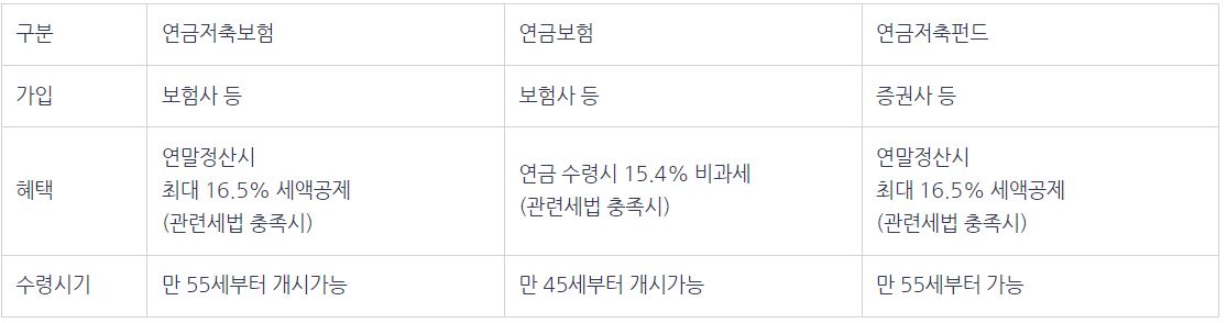 특징: 연말정산시 최대 16.5% 세액공제, 만55세부터 연금 개시