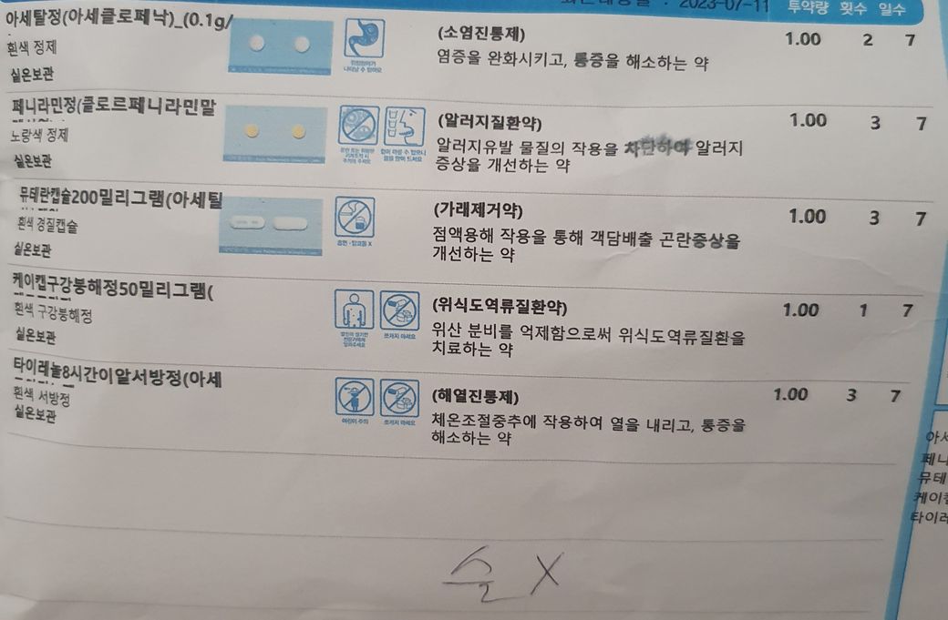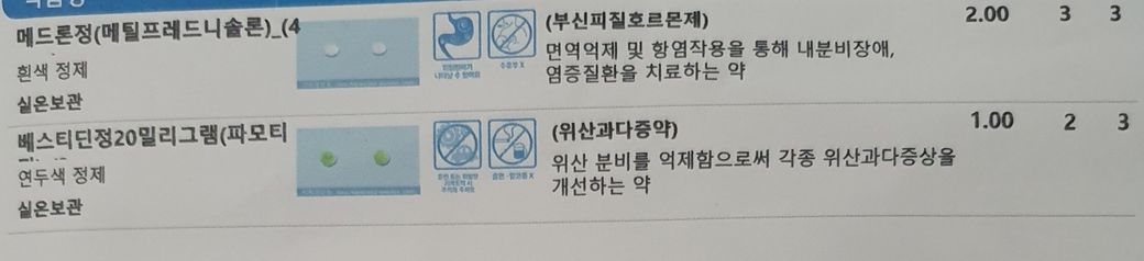 지금 2일간 복용 받은 약 보면요