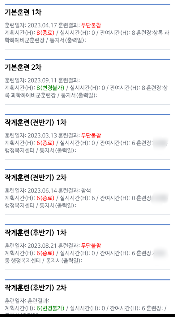 1차에 무단불참했다면 2차 훈련 통지가 날라옵니다