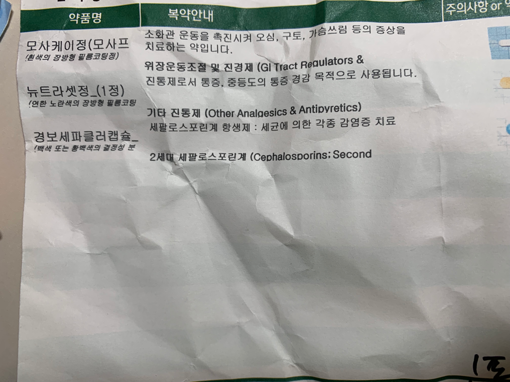 모사케이정 / 뉴트라셋정 / 세파클러캡슐과