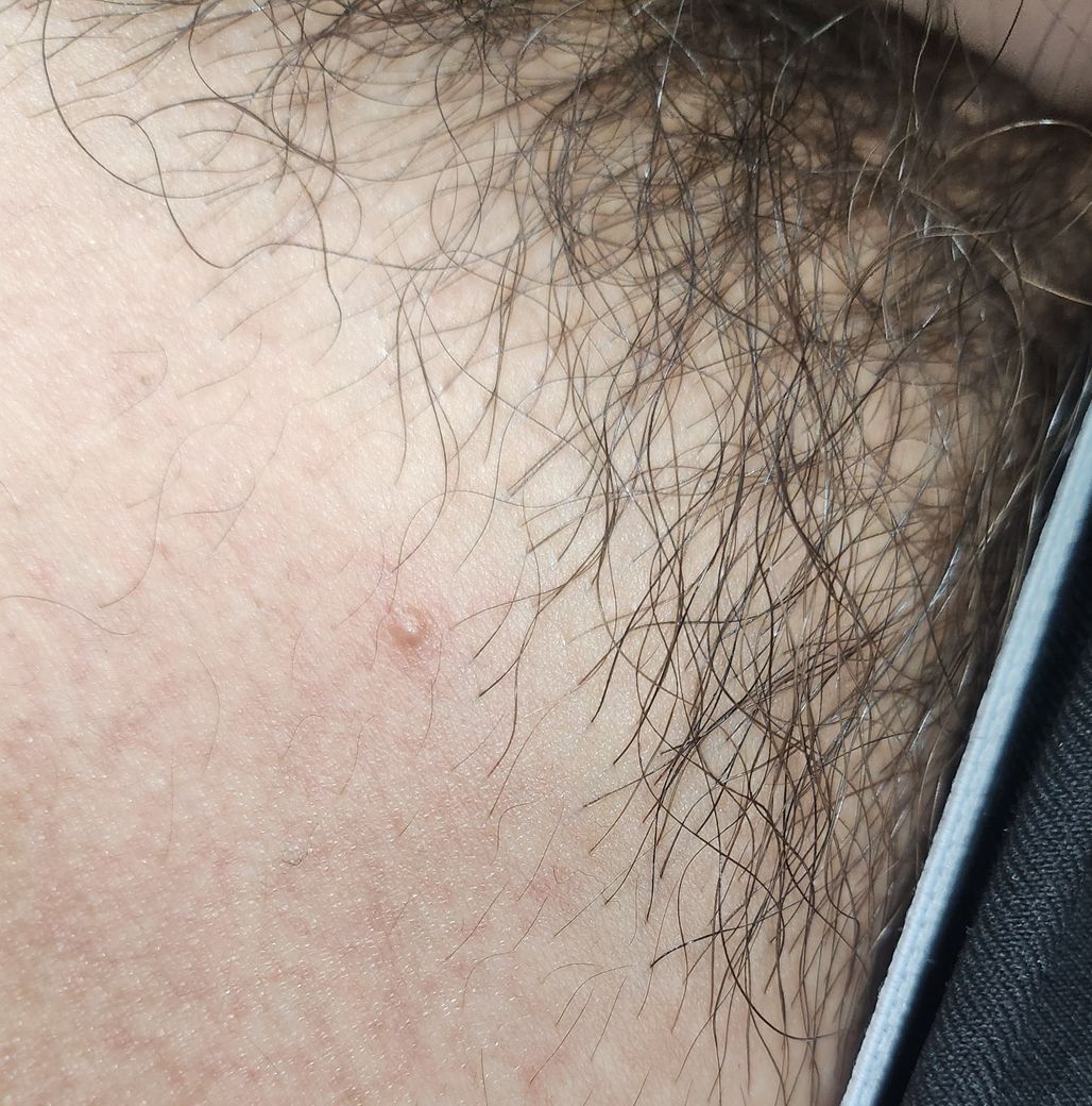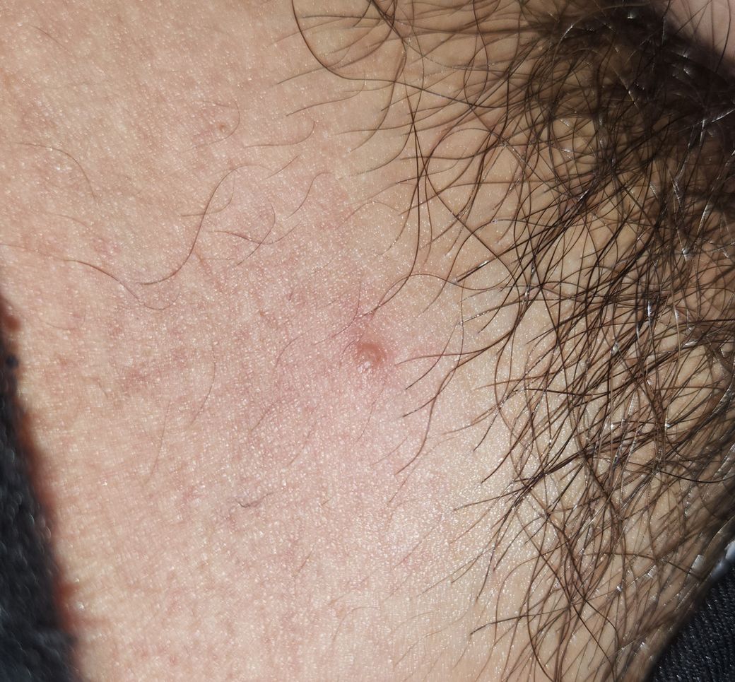음모 끝 부분에 자주 가렵고 사진과 같은 붉은 뾰루지가 올라오는데 혹시 성병과 같은 병변으로도 보이시는지 궁금합니다. 과거 성병검사에서는 이상 없었던 걸로 기억합니다. 짜볼래도 뭐가 나오진 않는것 같고 약간 따끔합니다