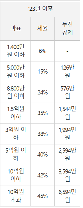 과세표준에 따른 양도소득세율은 다음과 같습니다.