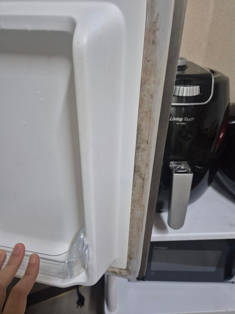 냉장고가 고장나서 집주인이 냉장고를 중고로 바꿔줬는데 고무패킹에 곰팡이가 있는데