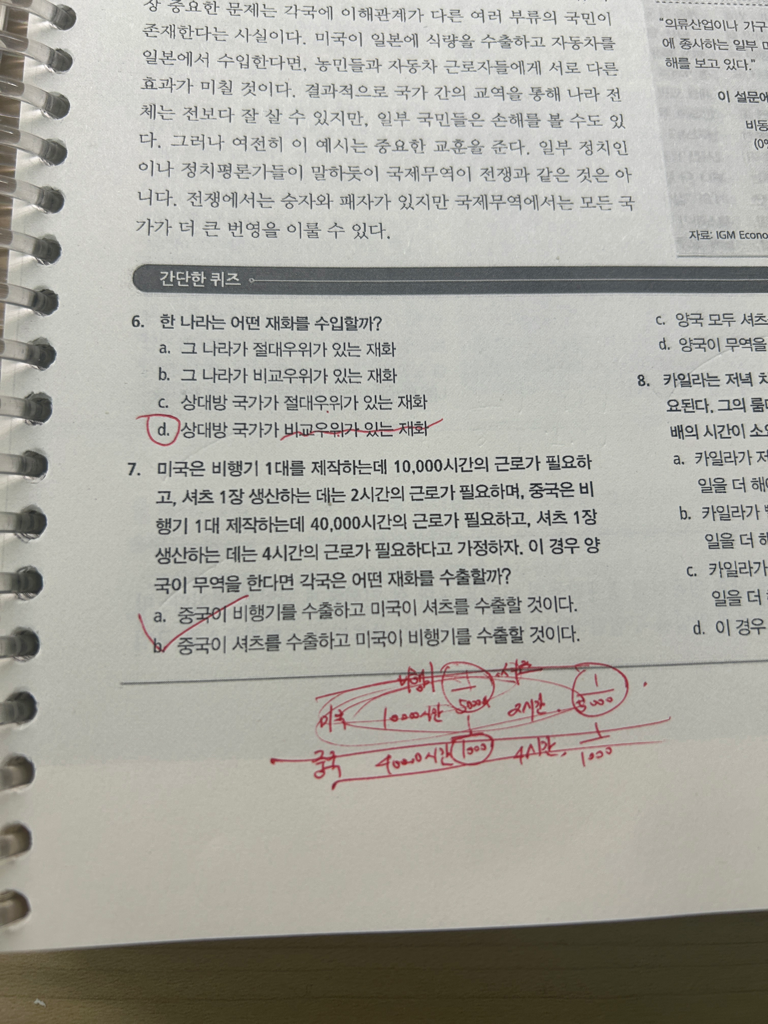 비교우위 원리를 제대로 적용하기 위해서는 기회비용 개념을 정확히 이해해야 합니다. 특정 재화 생산에 드는 시간/노동력을 다른 재화의 생산기회 손실로 계산해야 합니다.