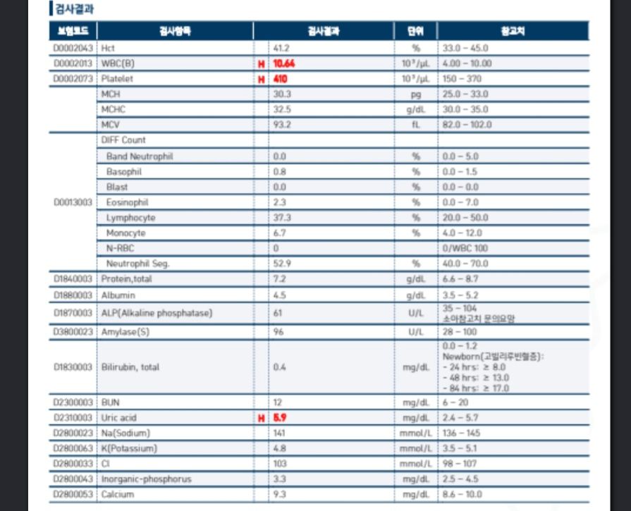 아참 피검사 2시간전에 밥을 먹고 검사한것이 문제일까요..ㅜㅜ