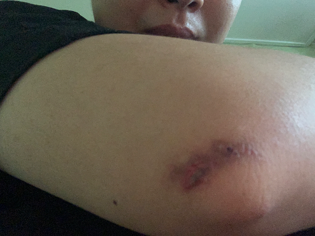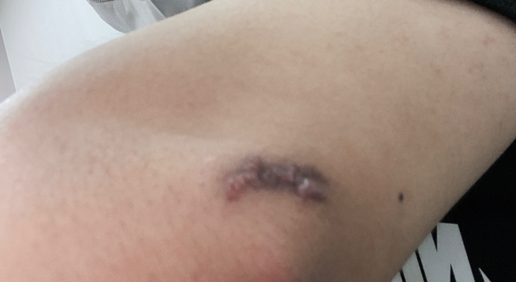 해당 증상은 켈로이드 흉터가 진행되고 있는 상태로