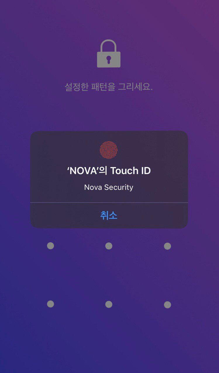 노바 암호화폐 지갑 접근시 지문인식을 통해 로그인 할 수 있습니다.