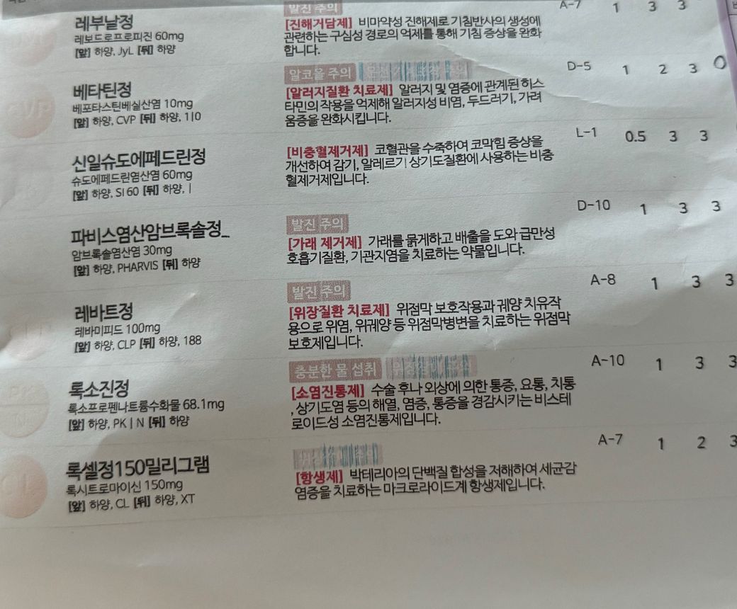 4일뒤 코수술예정이고 저번주부터 코감기가 완전히 나아지지않아서 약 처방받았습니다