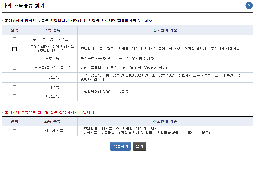 종합소득세 신고때 300미만 기타소득은 분리과세 소득 항목 꼭 체크하고 신고해야 하나요?