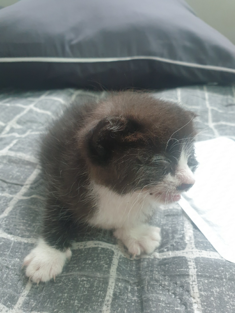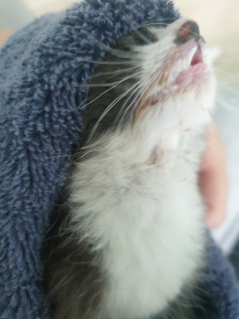 어미한테 버려진 새끼고양이를 구조했는데 고개도 계속 넘어가고 숨도 제대로못쉬고 눈에서 고름이나오고 콧물도 심해 병원에 데려갔습니다.