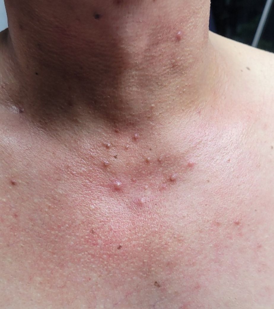 저부분에 수포가 나는데 약국에서 연고를 사와바르는데도 전혀 호전이 없다고 합니다.