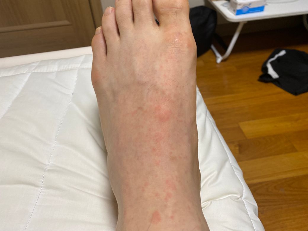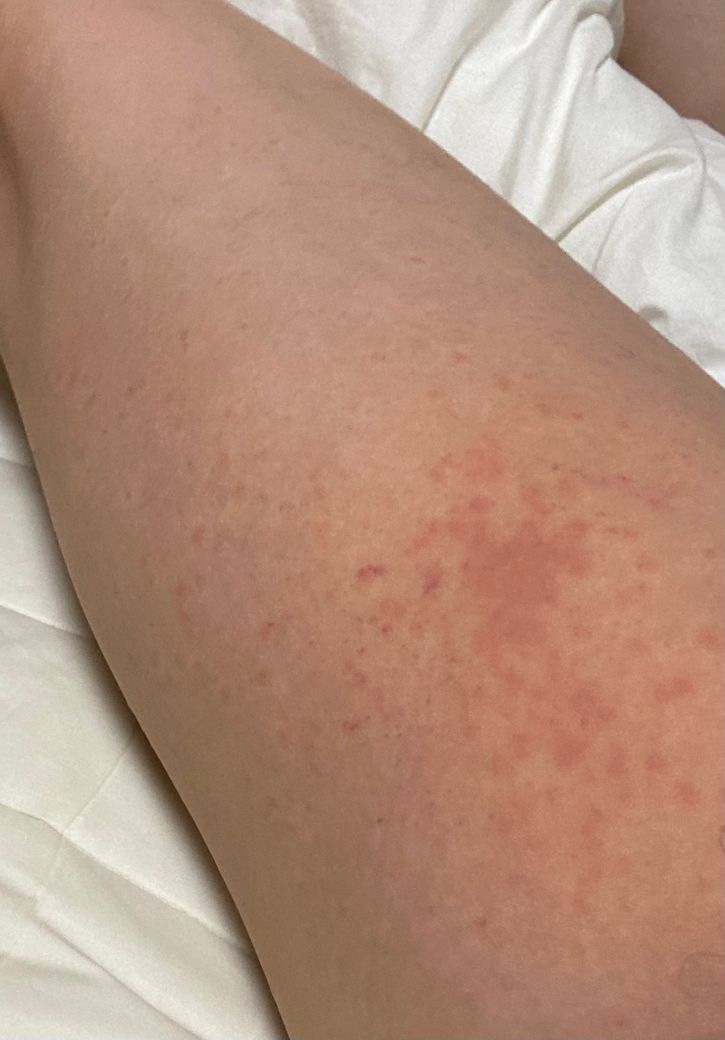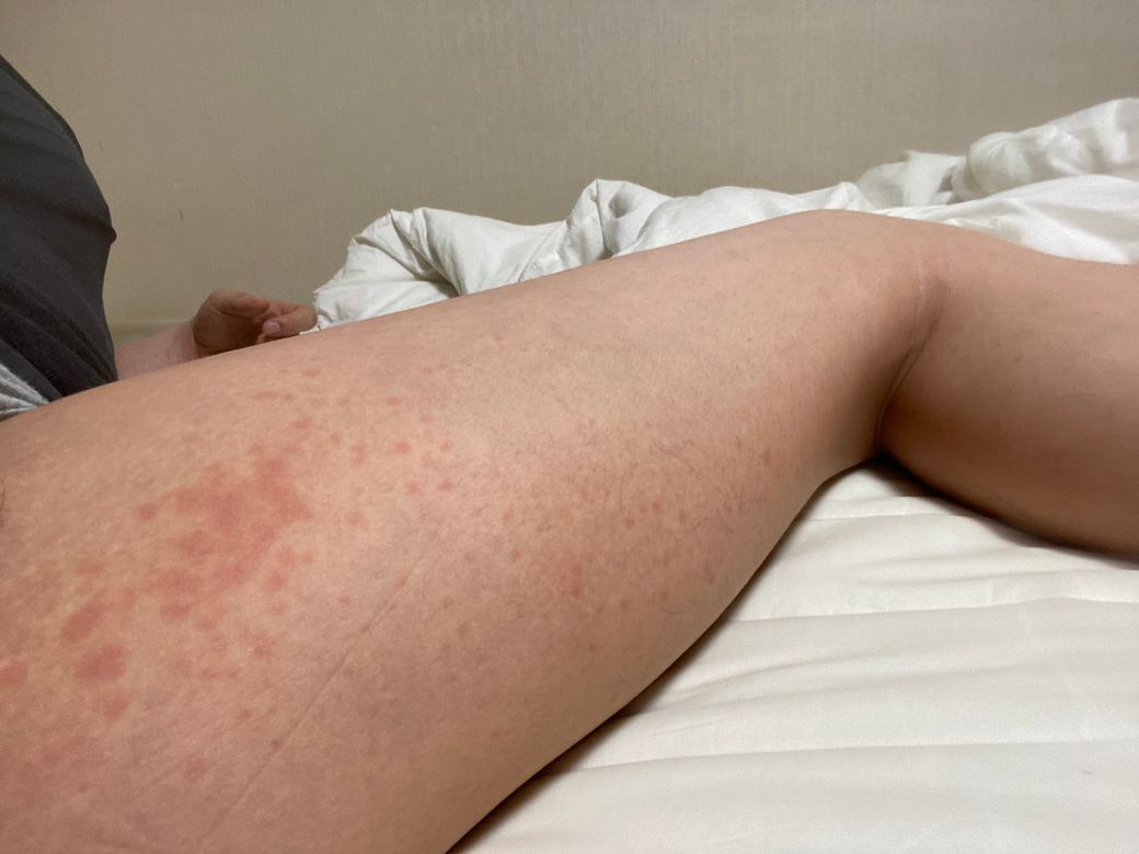 원인은 잘 모르겠는데 어제정도부터 갑작스레 사진처럼 팔,발,허벅지 안쪽에 붉은 반점과 두드러기 같은게 심하게 올라옵니다. 약간 가려운 부위도 있고 (의식적으로 안건들면 참을만 한데, 무심코 긁으면 심해짐) 이게 뭘까요 ?