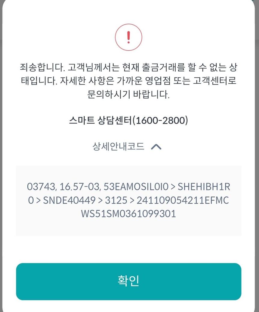 갑자기 인터넷 뱅킹에서 예금인출이 안되면서 이런 문구가 뜹니다