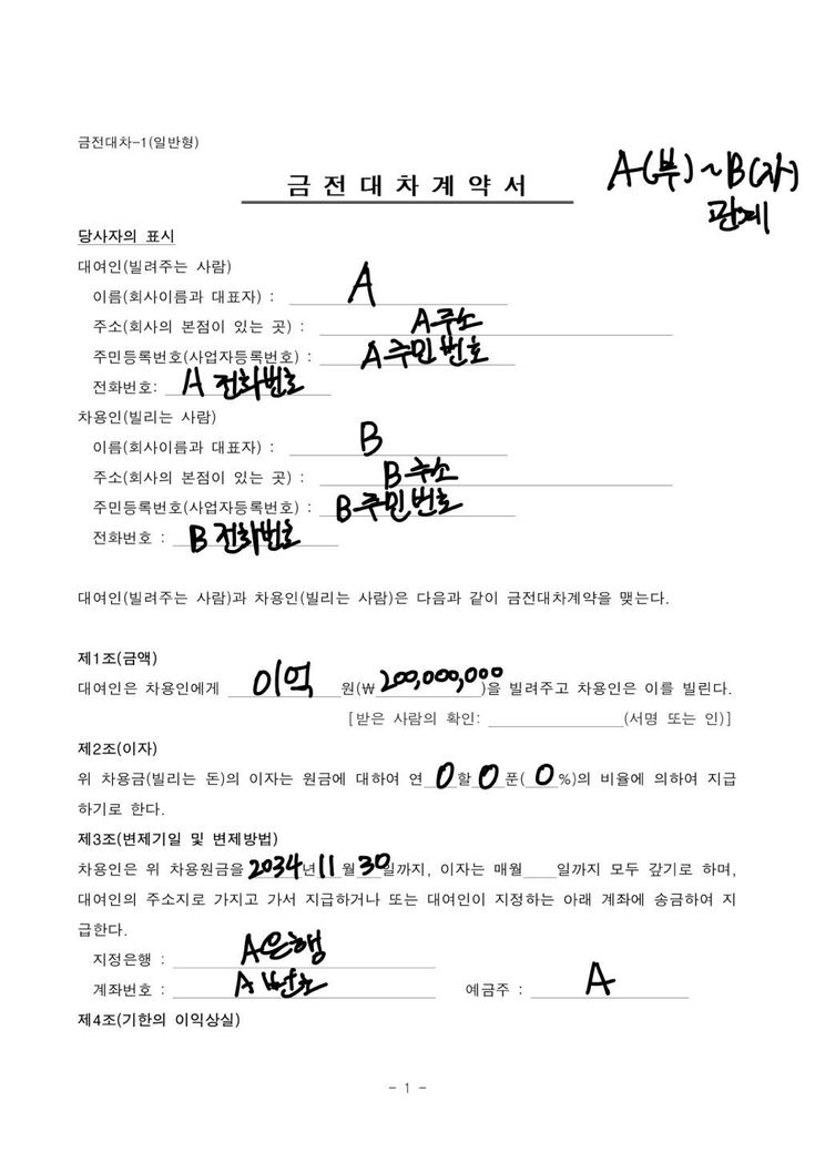 첨부 이미지처럼 부자간 금전대차를 진행하려 합니다,