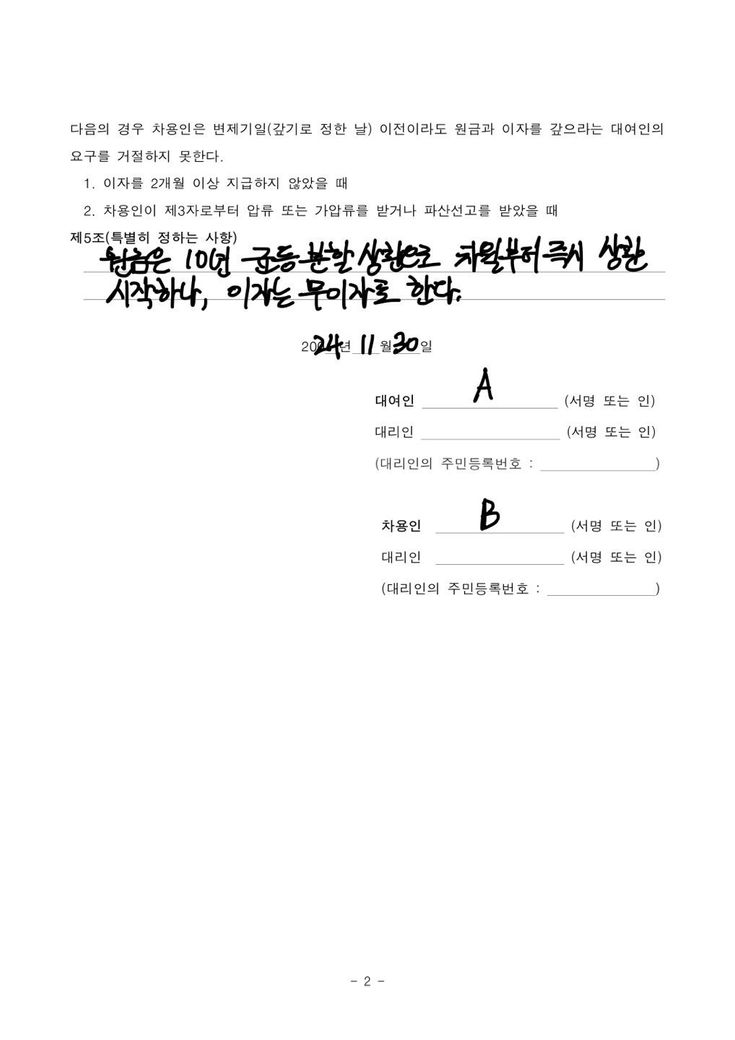 첨부와 같이 부자간 차용증(금전대차계약서)을 작성해도 문제가 없을까요?