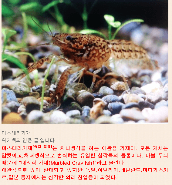 그런데 분양해주는 곳에서 미스테리가재라고 하면 그것이 맞지 않을까요?