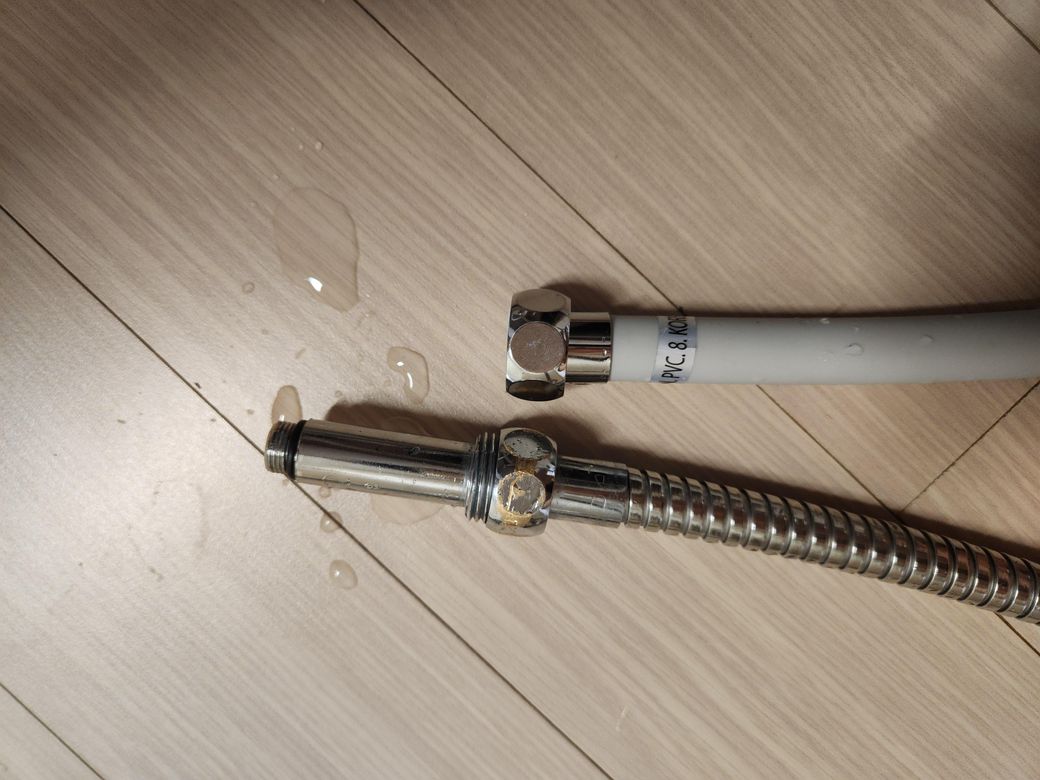 쇠파이프와 샤워호스를 분리해야 위에 있는것을 연결할수 있습니다