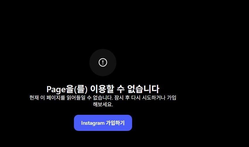 인스타그램에서 특정 페이지를 열려고 하면 "Page을(를) 이용할 수 없습니다. 현재 이 페이지를 읽어들일 수 없습니다. 잠시 후 다시 시도하거나 가입해보세요." 라는 메시지가 뜹니다.
