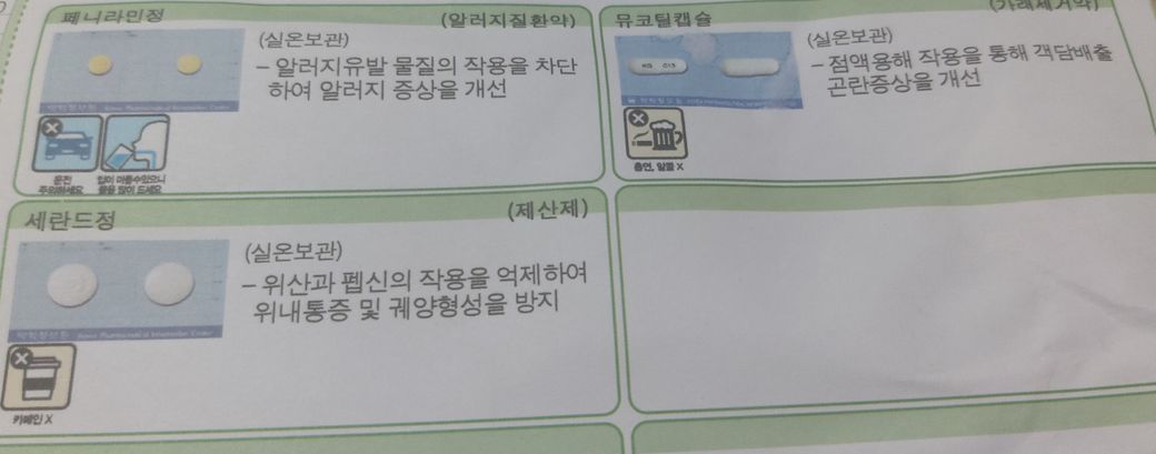 질문하신 내용에 대하여 아래와 같이 답변 드립니다.사진으로는 명확하게 이상이 생긴 것처럼 보이지는 않네요. 처방전에 있는 약들은 피부에 부작용을 나타내지 않는 성분으로 보입니다. 통증이나 가려움증이 없다면 좀 더 지켜보시면 좋을 것 같습니다. 만약 증상이 수일 동안 지속된다면 자세한 확인을 위해 피부과에서 진료를 받아보시면 좋겠구요.