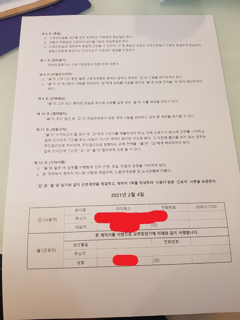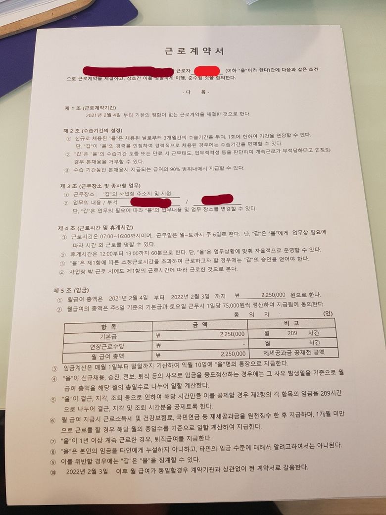 근로계약서 작성전입니다. 사진 첨부합니다.