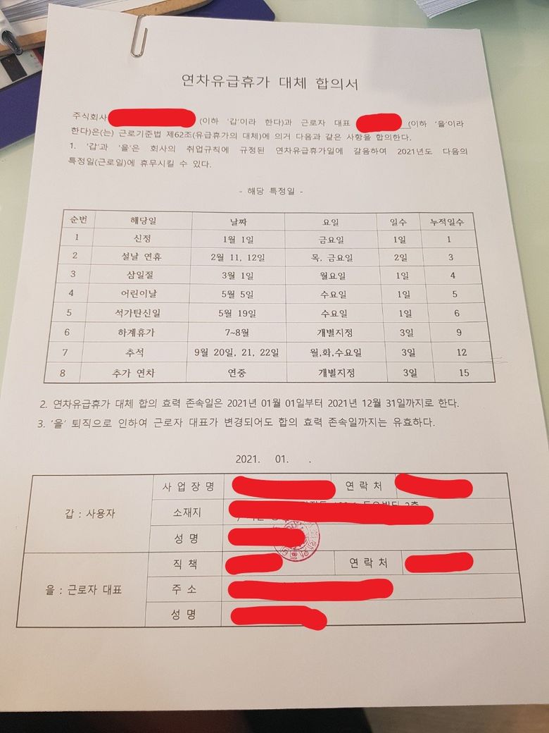 부당한 근로계약서 작성 (법적가능한지) 그리고 연차수당