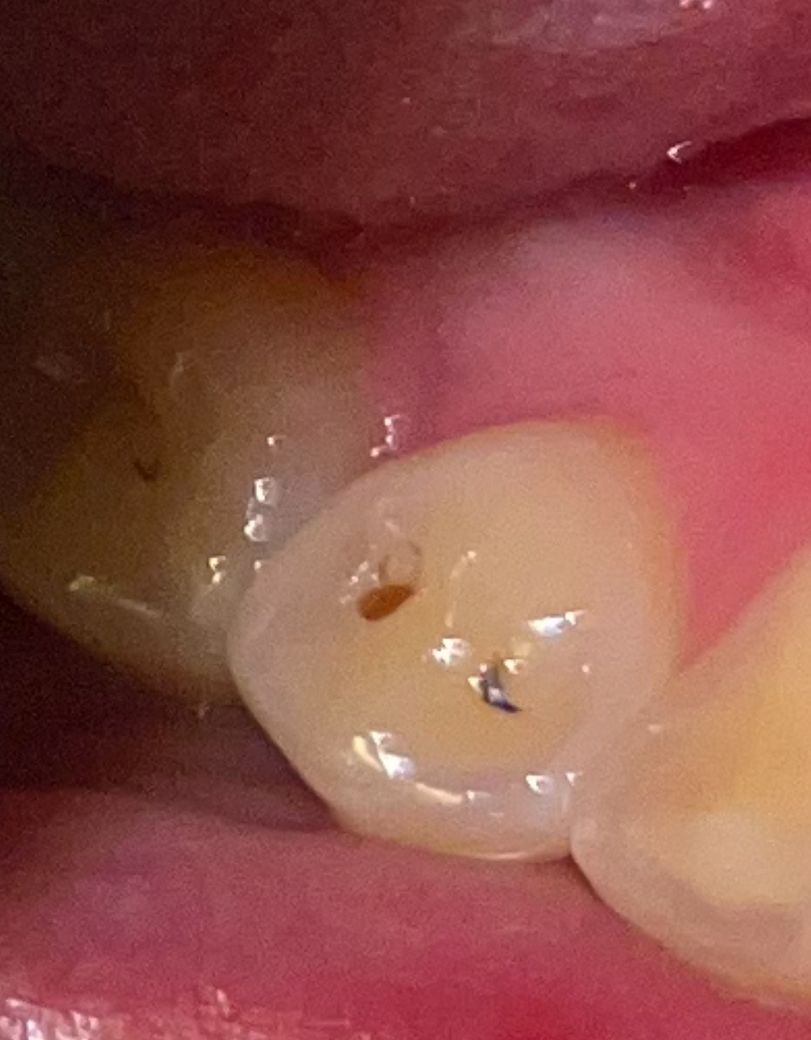 사진으로 보아도 확실한 충치가 보입니다. 가능한 빨리 치과에 가서 치료해야 하지만 당장 1-2주가 급한 것은 아닙니다.