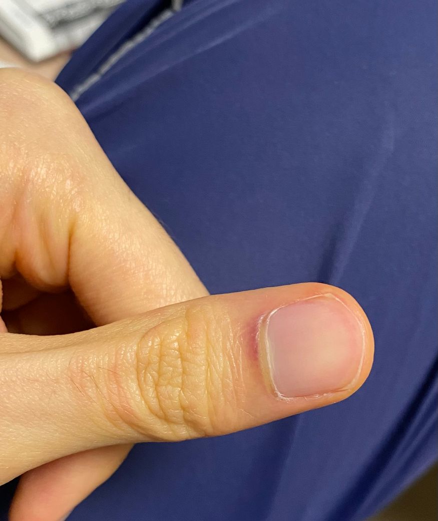 손톱 밑이 피멍처럼 빨간데 병인가요?