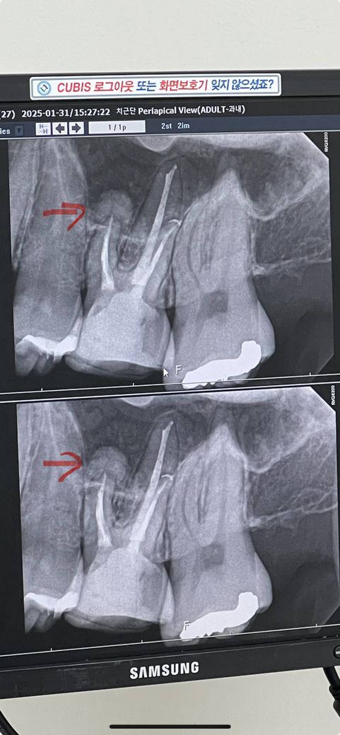 행해진 신경치료 자체 퀄리티는 우수한 것 같습니다
