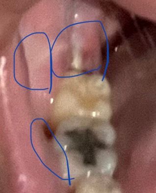 뽑은쪽 입몸에도 흰색이있어요ㅠㅠ혹시 치조골? 그런건 아니겠죠...?! 아직 실밥은 풀기 전이에요..