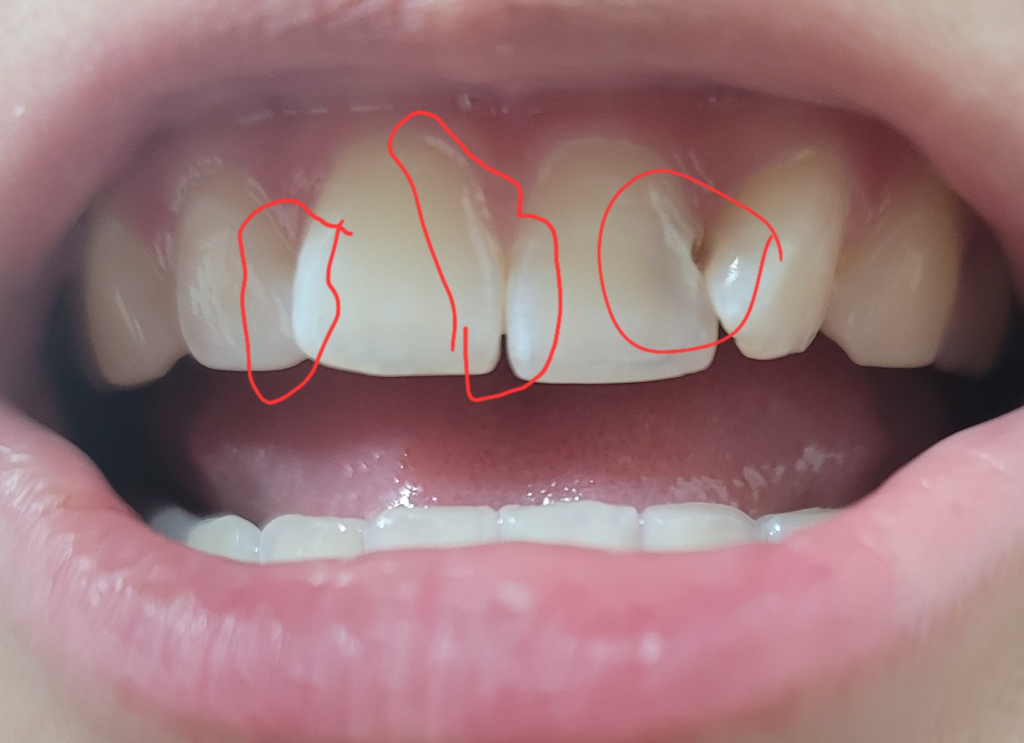 앞니에 흰색 줄이 뭔지 알 수 있을까요?