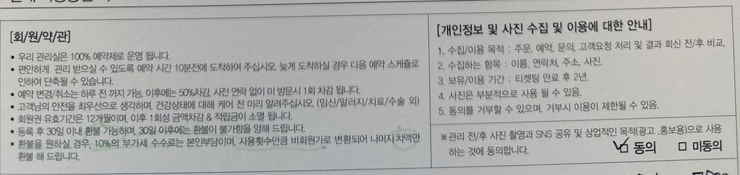 멤버십 위약금10% (미용서비스 회원권 계약의 해지관련 사항) 15만원공제