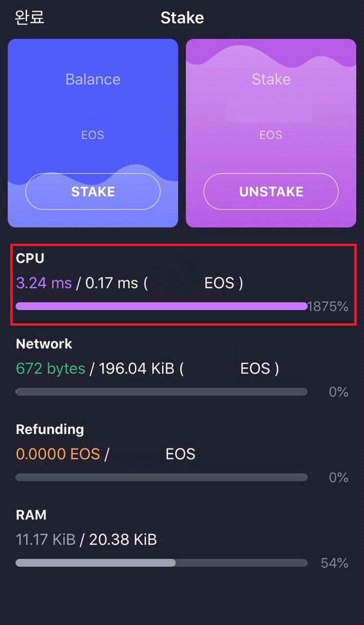 [토큰포켓 포겟모드 가이드] EOS CPU가 부족하신가요?