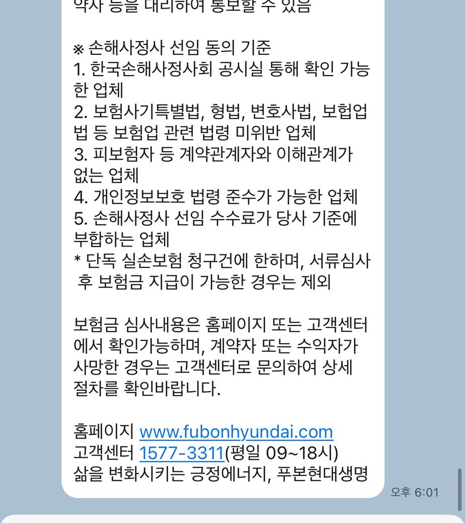 : 해당내용은 보험금 청구시 일률적으로 발송되는 문자로 그내용은 아래와 같습니다.