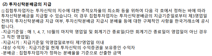 TIGER 2차전지 소재FN의 경우에는 분기 배당을 계획하고 있는 상품이나 23년 7월 상장하여 아직은 첫 분배금을 지급한 적이 없다고 해요. 다만, 분배금의 지급 기준일은 매 1,4,7,10월의 마지막 영업일 및 회계기간 종료일을 설정하고 있으며 지급시기는 지급기준일 익영업로부터 제 7영업일 이내에 지급하도록 설정되어 있어요