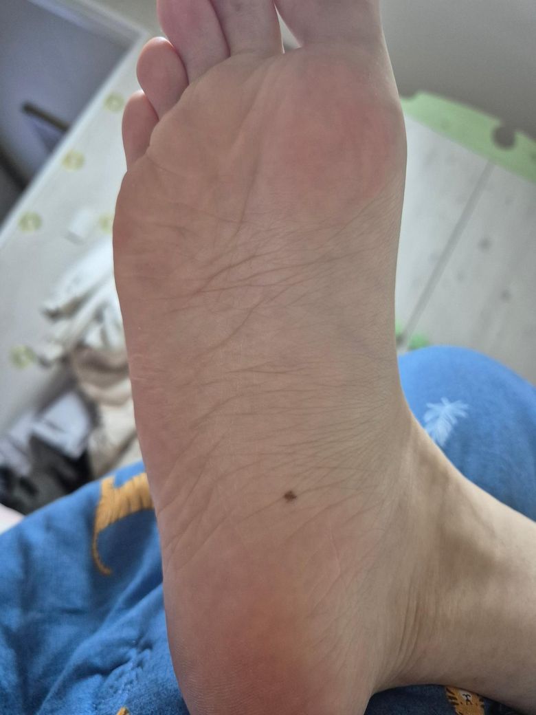 오른쪽 발바닥 밑에 점처럼 생겼는데 생긴지는 오래됐습니다...저도 모르는 사이에 갑자기 생긴거같은데 예전에 유리밟은적이 있어서 그거 빼다가 상처가 난건지 기억이 가물가물합니다...괜찮은걸까요..??