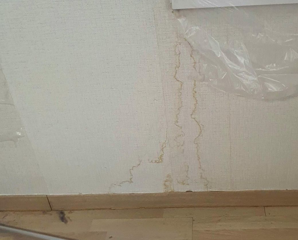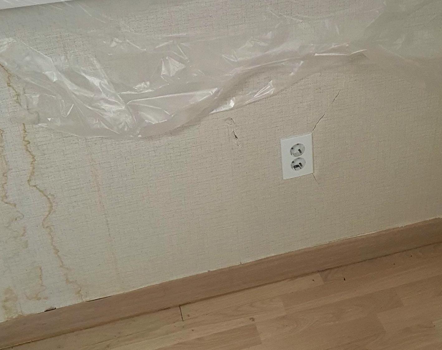 이사 오기 전에는 못 봤었는데, 짐을 빼고 난 후 벽에 누수로 인해 오염, 곰팡이, 바닥 몰딩 들뜸으로 인해 집주인에게 도배, 장판을 새로 해 줄 수 있냐고 물었는데 거절하셔서 거실만 새로 도배하고 살았습니다. 누수가 또 발생하여 거실, 작은방, 안방 벽지에 자국이 또 생겼고 집주인에게 말했으나 고쳐주지 않아서 저희가 고쳤습니다. 사진은 이사 오는 날 놀라서 찍은 사진입니다.