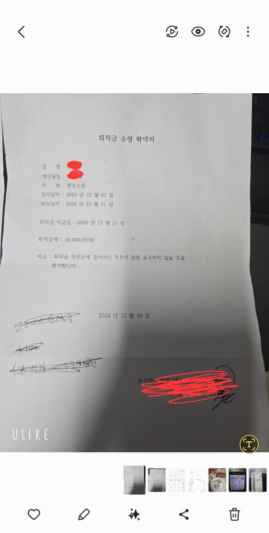 ※8년간 일했는데 12월30일 당일 불러서 퇴사를 종용하고 사인을 해서 아버지가 경황없이 사인을 하셔서