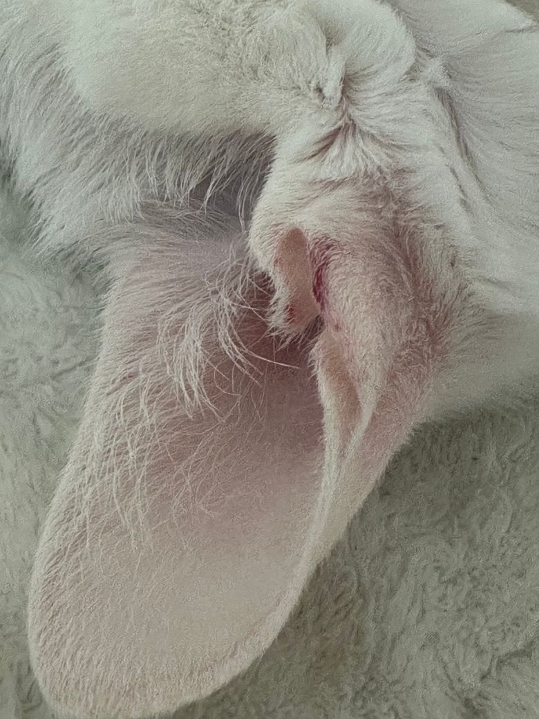 사진처럼 귀 끝이 빨개져서요 고양이를 한 마리 더 키우는데 둘이 싸우다 저렇게 된건지, 간지러워서 긁은건지, 아니면 혹시 피부병 증상이 의심되는지 궁금합니다