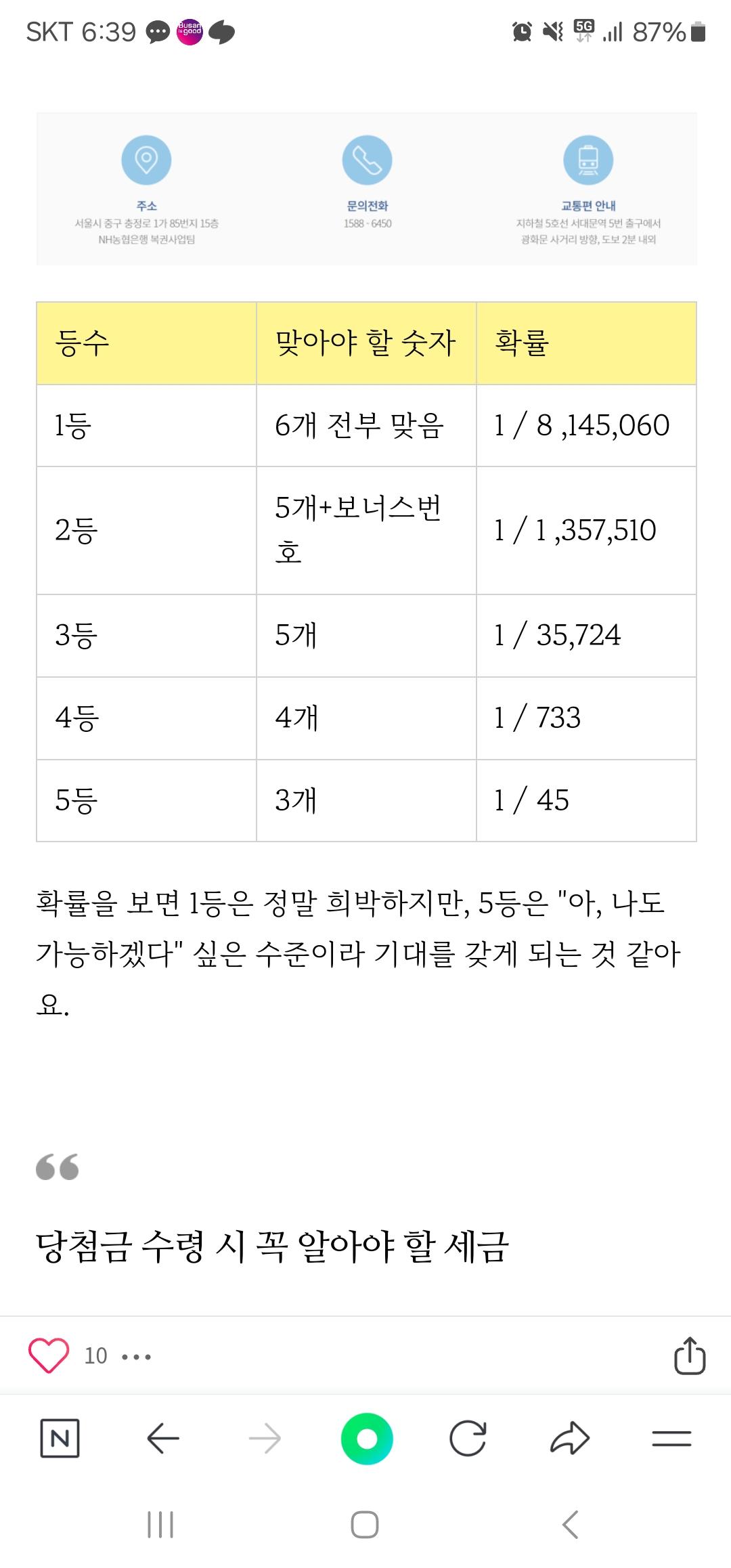 생각해보니 1등 당첨확률만 알고 있었는데 나머지 2~5등까지의 당첨확률은 어떻게 되나요?