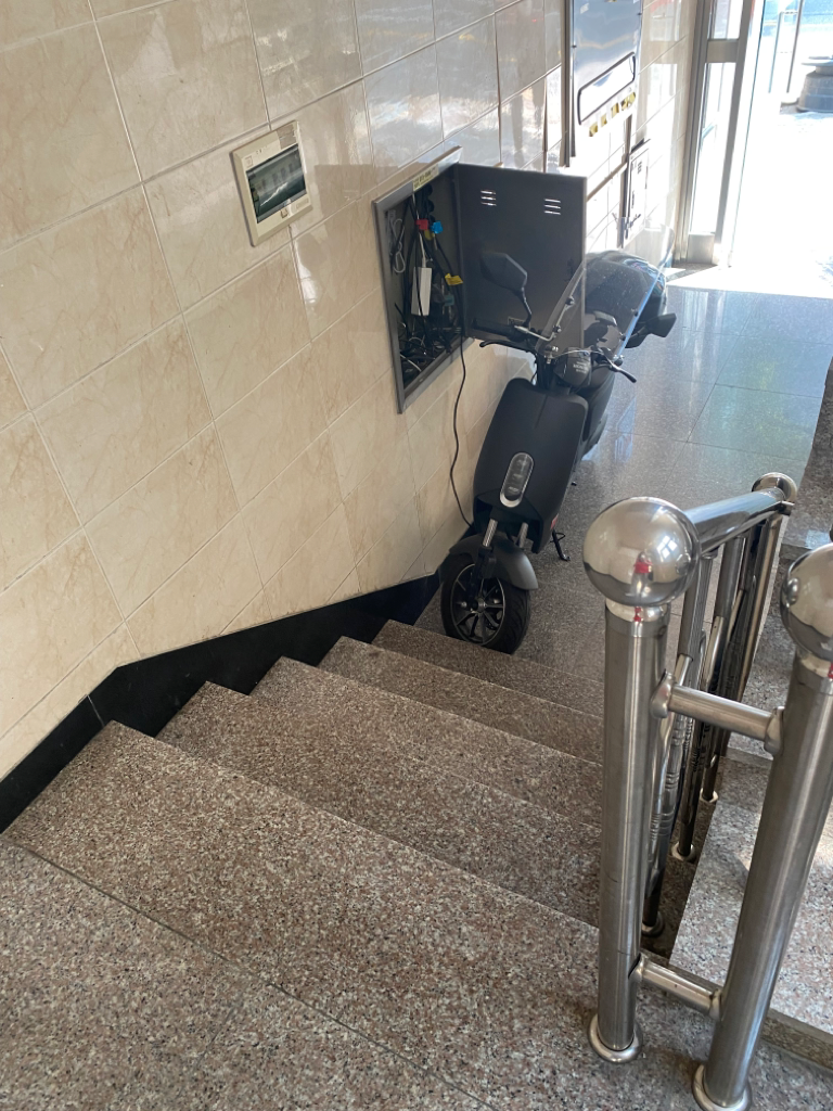 배전판에서 선을 따서 전동 오토바이 충전을 하고 있더라구요...