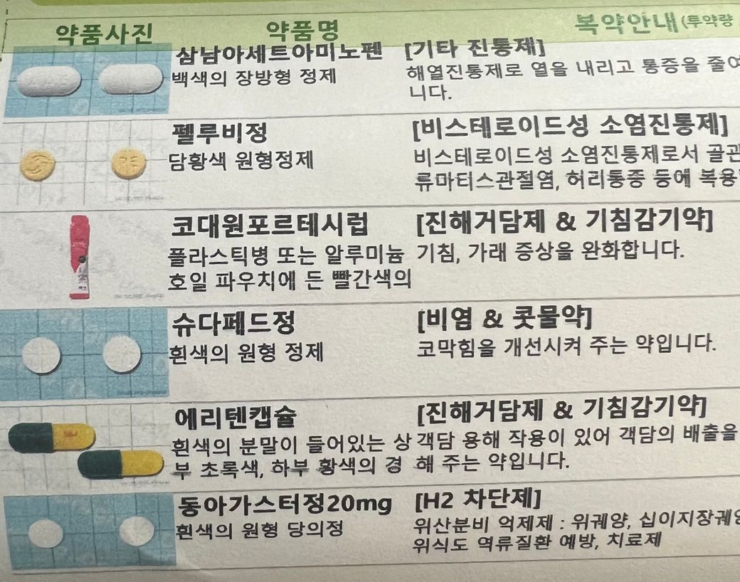 코로나 양성 판정을 받고, 병원에서 사진 속 약들을 처방받았는데